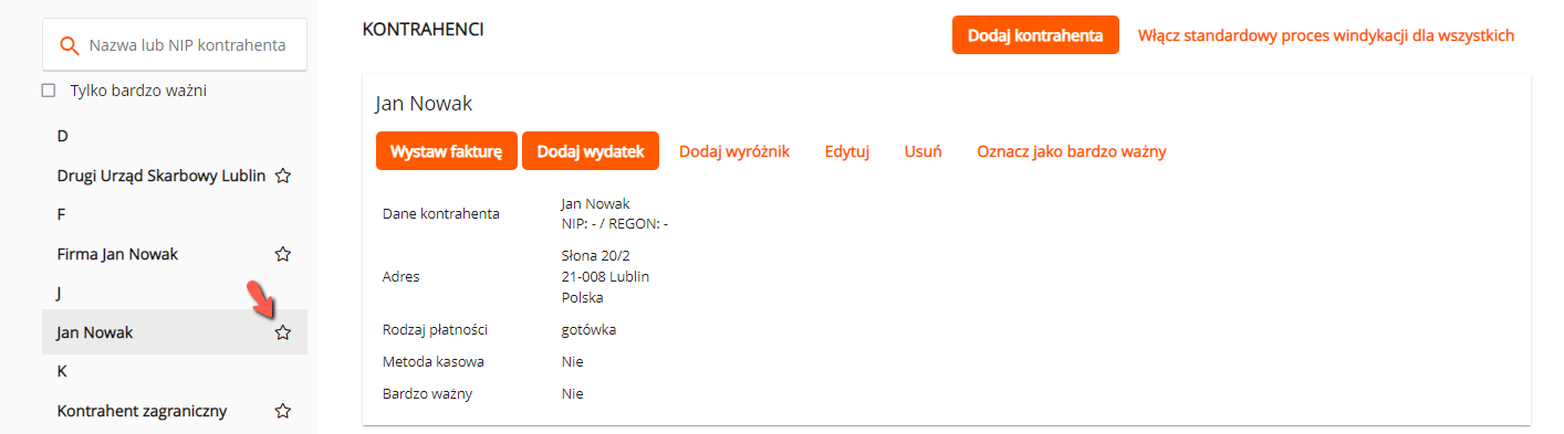 Aby oznaczyć kontrahenta jako ulubiony należy: