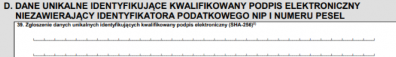 - "zgłoszenie danych unikalnych identyfikujących kwalifikowany podpis elektroniczny podatnika" - części C formularza nie należy uzupełniać.